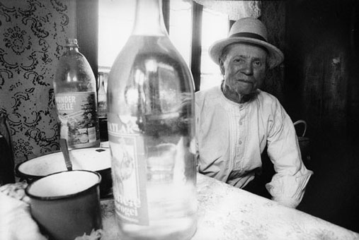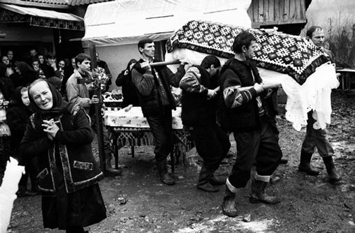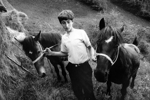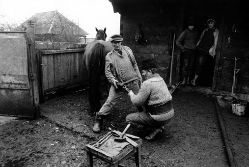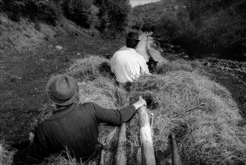 A world in which time seemed to stand still. Horse- and ox-driven carts determined the rhythm of everyday life. The fields were cut and tilled by hand. Many women made their own clothes, and some older villagers still wore Opinci, traditional handmade drawstring shoes made out of pigskin. Even within its own country, Romania, Maramures County was considered poor and backward.